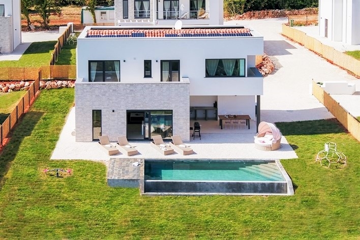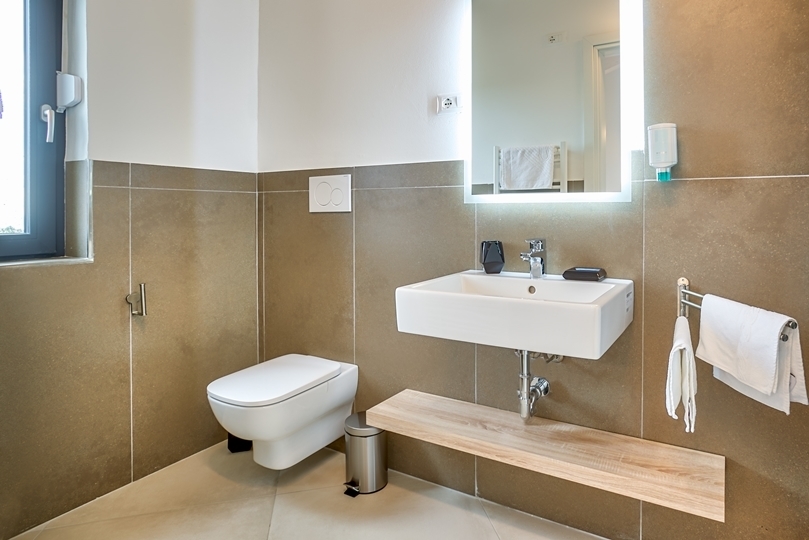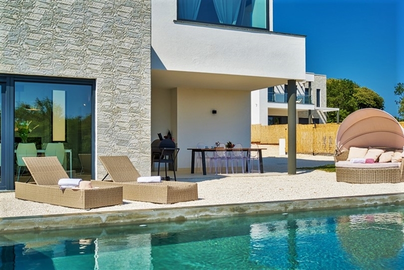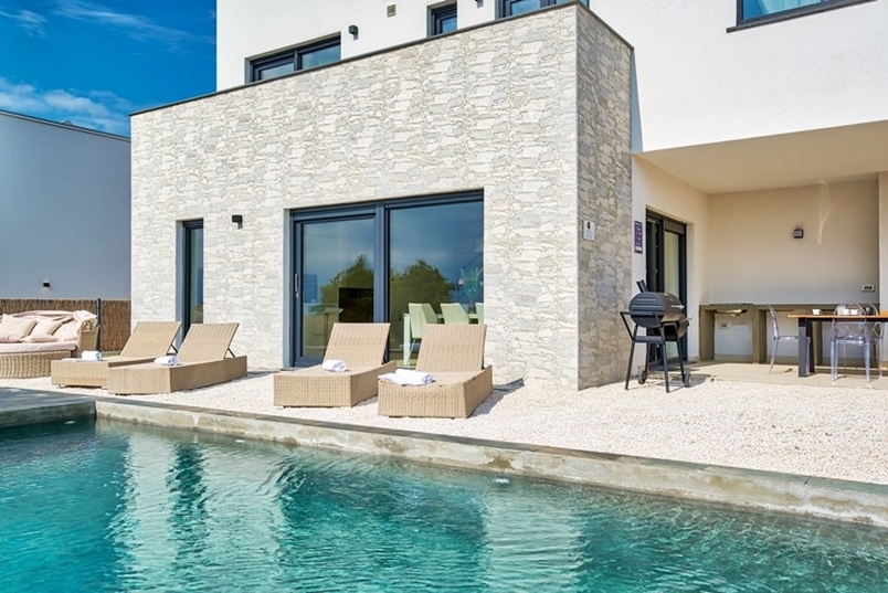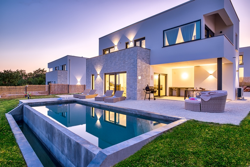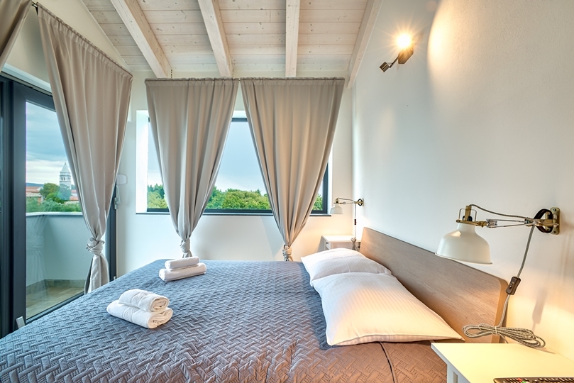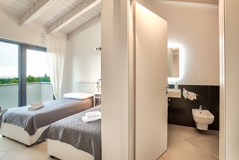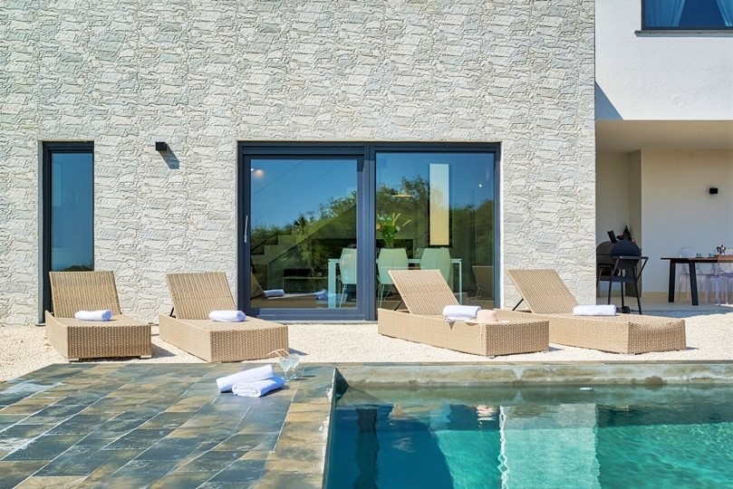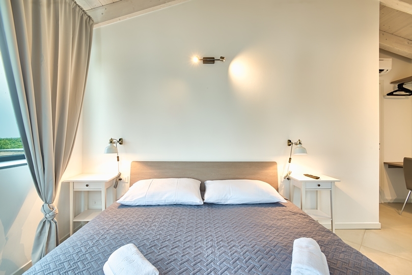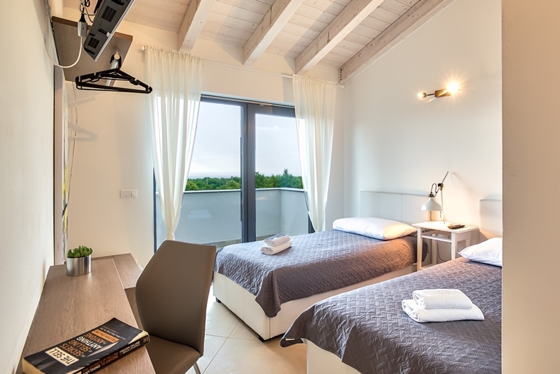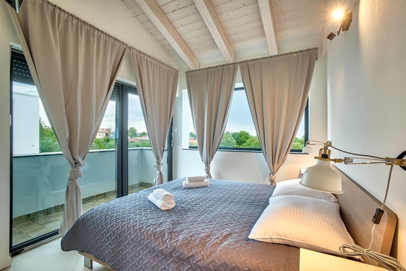 - 3 bedrooms: Each with a balcony and panoramic view of the Adriatic Sea and the island of Cres. The villa is facing southeast so you can wake up to the warm light of the Istrian morning sun.